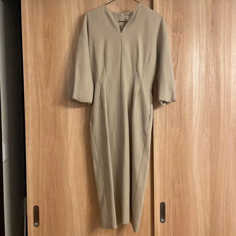 Demi-Luxe BEAMS 베이지 V넥 긴팔 원피스