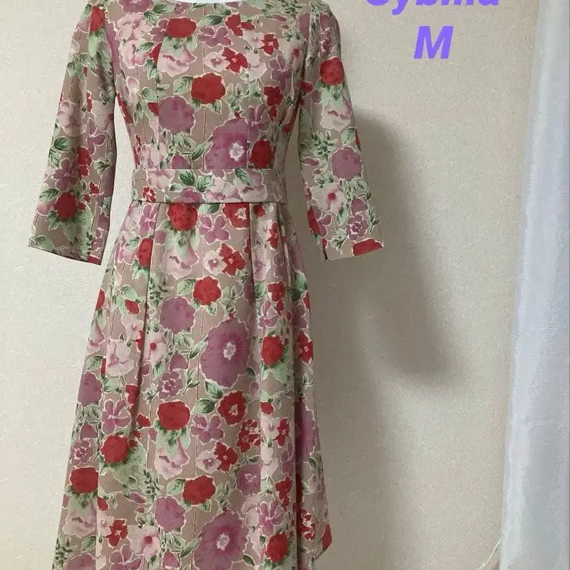 [ 새상품급 ] Sybilla 시빌라 꽃무늬 7부 소매 무릎 기장 원피스