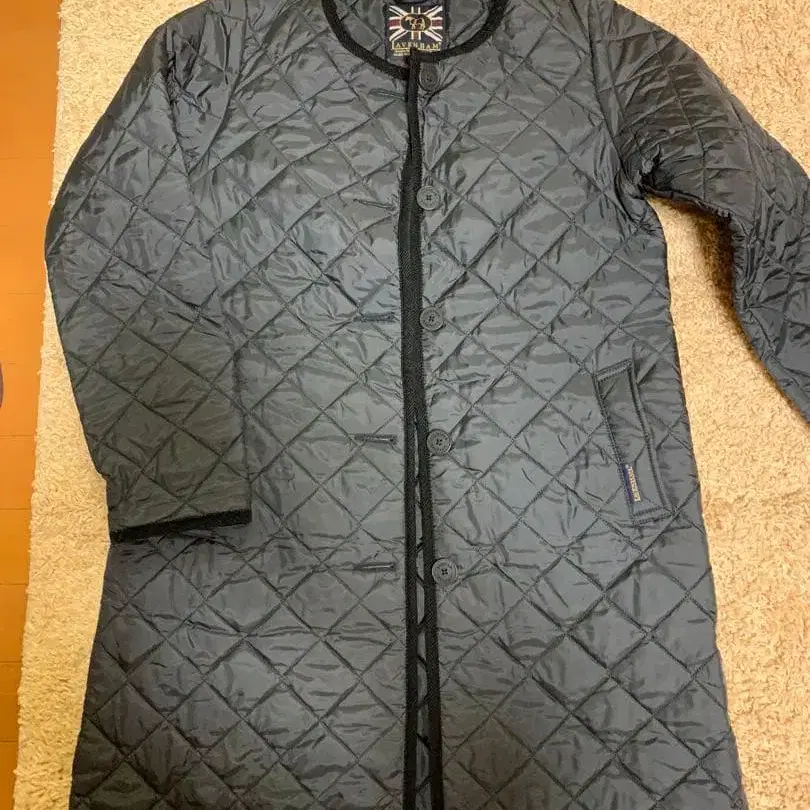 LAVENHAM 그레이 퀼팅 자켓 노카라 코트 블랙