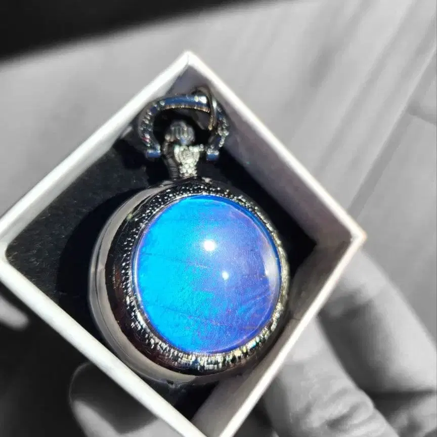 구조색의 아름다운 모르포 블루와 건메탈 블랙 회중시계의 조합이 아름다운 1품입니다!