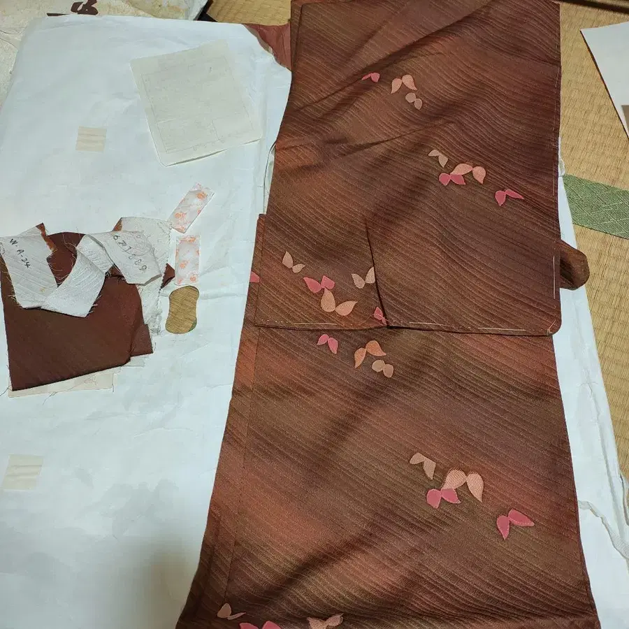 브라운 색상의 실크 코몬 기모노, 꽃무늬 디자인. - 색상: 브라운 - 디자인: 꽃무늬 - 소재: 실크 - 스타일: 코몬 방문해 주셔서 감사합니다.