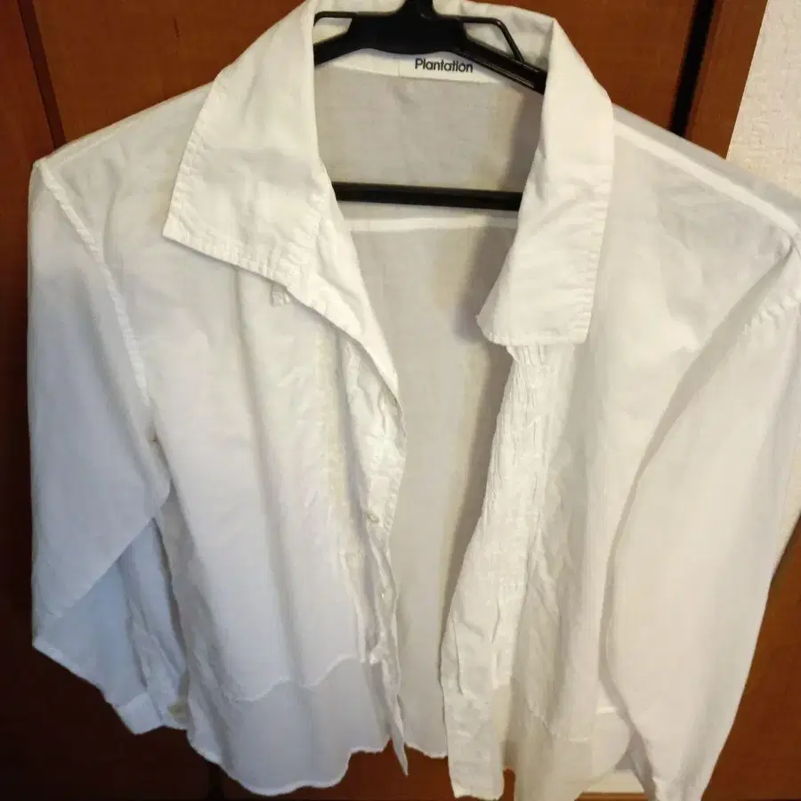 Plantation 화이트 긴팔 셔츠 앞 프릴