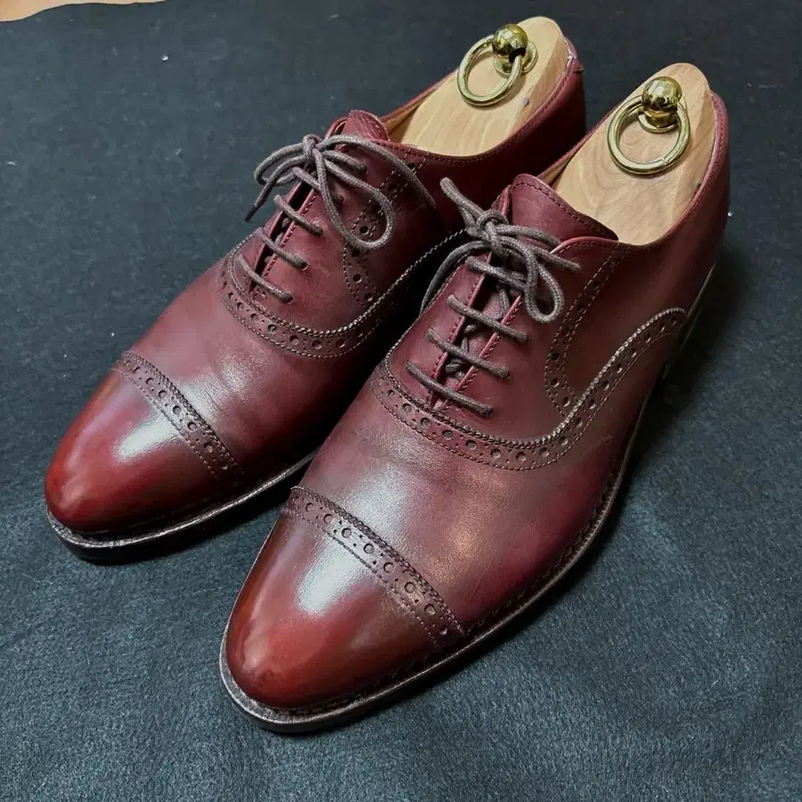 방문해 주셔서 감사합니다. 브랜드 잘란 스리와야 라스트 11120 (잘란 스리와야 스테디셀러 모델) 컬러 버건디 사이즈 6 (일본 사이즈 24.5cm~25cm) 밑창 다이나이트 솔, 토 부분 보강 완료 상태 새상품급, 밑창 9/10 잔존 부속품 신발 본체 ※ 슈트리는 부속되지 않습니다. 다크 레드 컬러의 가죽 소재 캡토 윙팁 비즈니스 슈즈. 정가 39,600엔