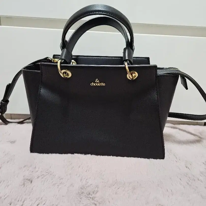 합성 피혁 소재의 블랙 2WAY 백, 골드톤 금장 장식 포함. 6, 7번째 사진을 보시면 아시겠지만, 키링을 달고 있어서 흠집이 있습니다. #& chouette #& chouette백 #블랙숄더백
