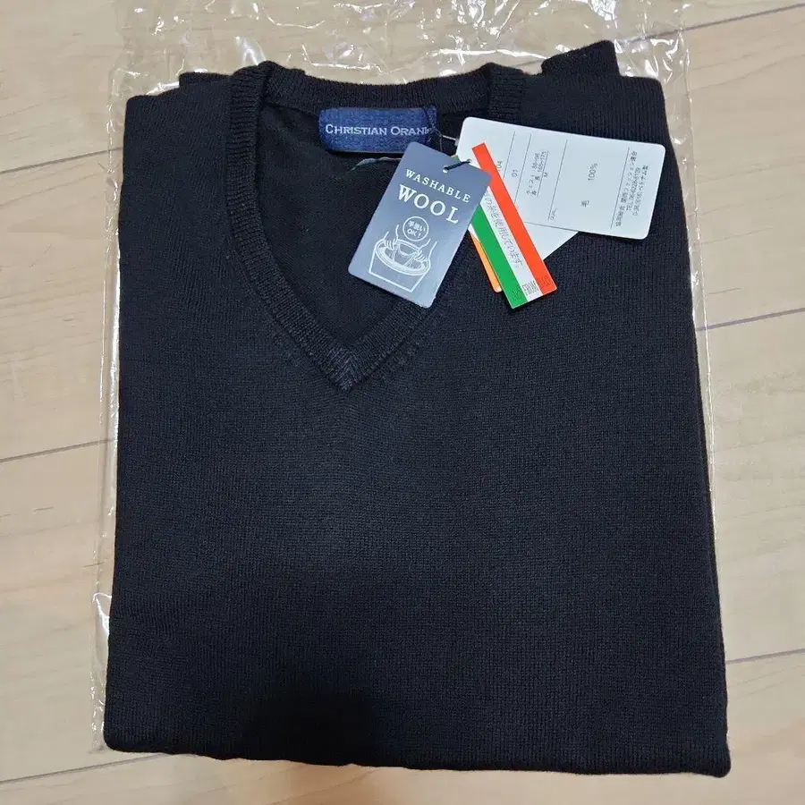 이탈리아제 울 100% V넥 스웨터, 블랙.
