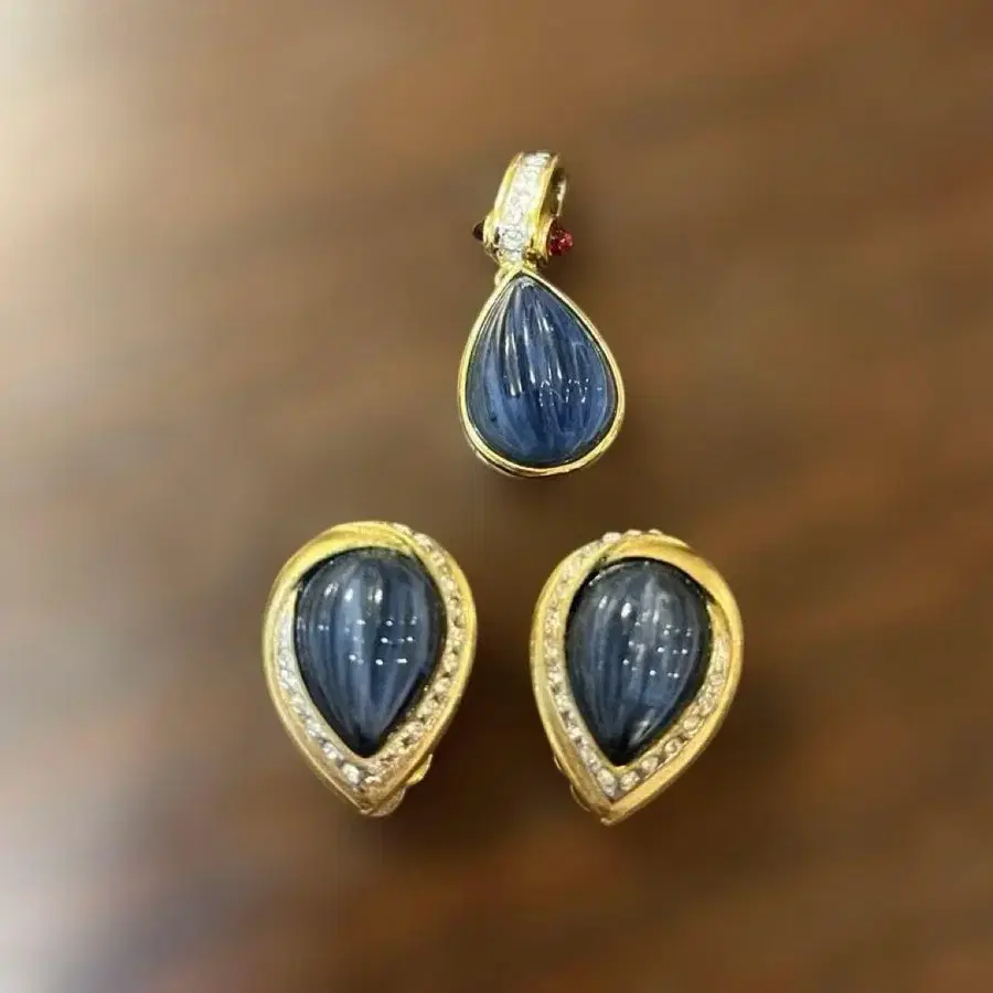 파란색 물방울 디자인 귀찌와 펜던트 헤드 세트
