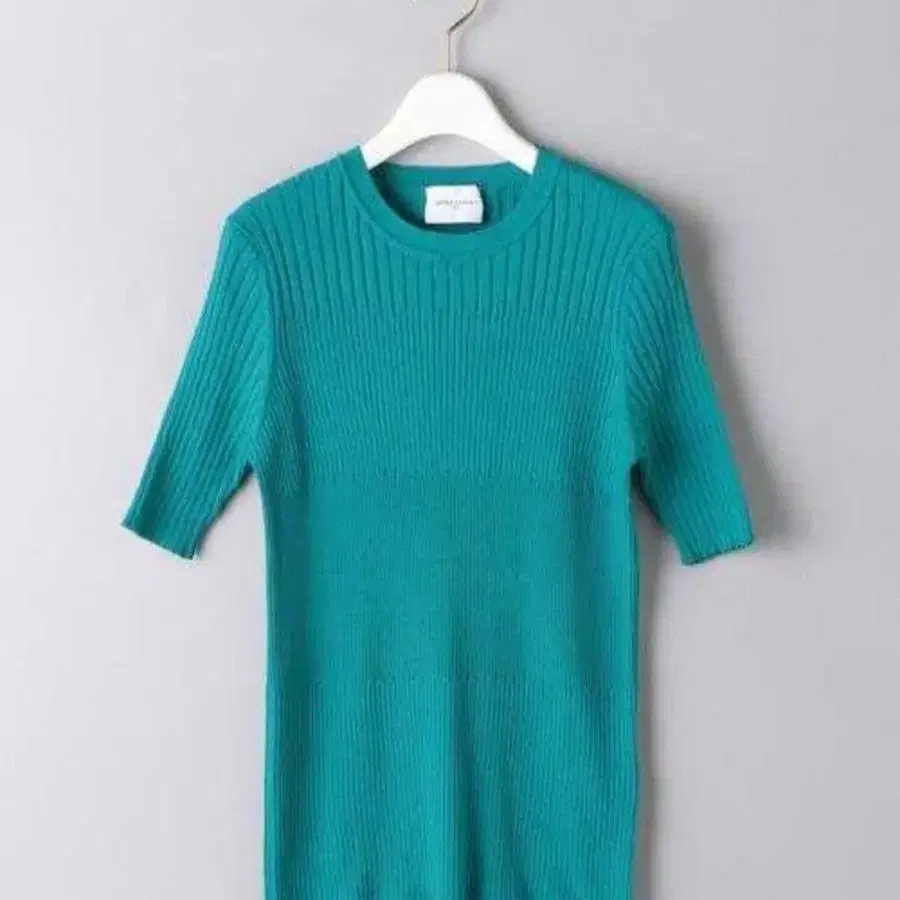 유나이티드 애로우즈 패널 리브 숏 슬리브 니트 터콰이즈 블루