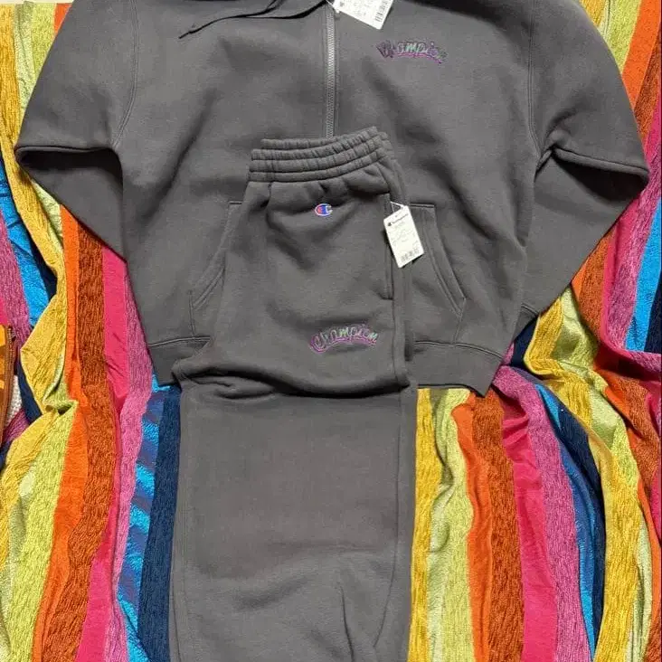 자동 번역되었어요. 원문보기매우 세련됨 ‼️ 초특가 ⁉️ 그레이 Champion 집업 후드 맨투맨 셋업, 자수 로고 포함.