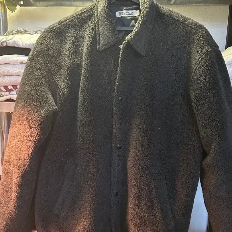 보아 소재의 다크 그레이 플리스 자켓, 밑단에 드로 코드 포함. - 브랜드: Cootie Productions - 사이즈: XL - 색상: 다크 그레이 - 디자인 특징: 보아 소재, 밑단에 드로 코드 방문해 주셔서 감사합니다. 사이즈 - L