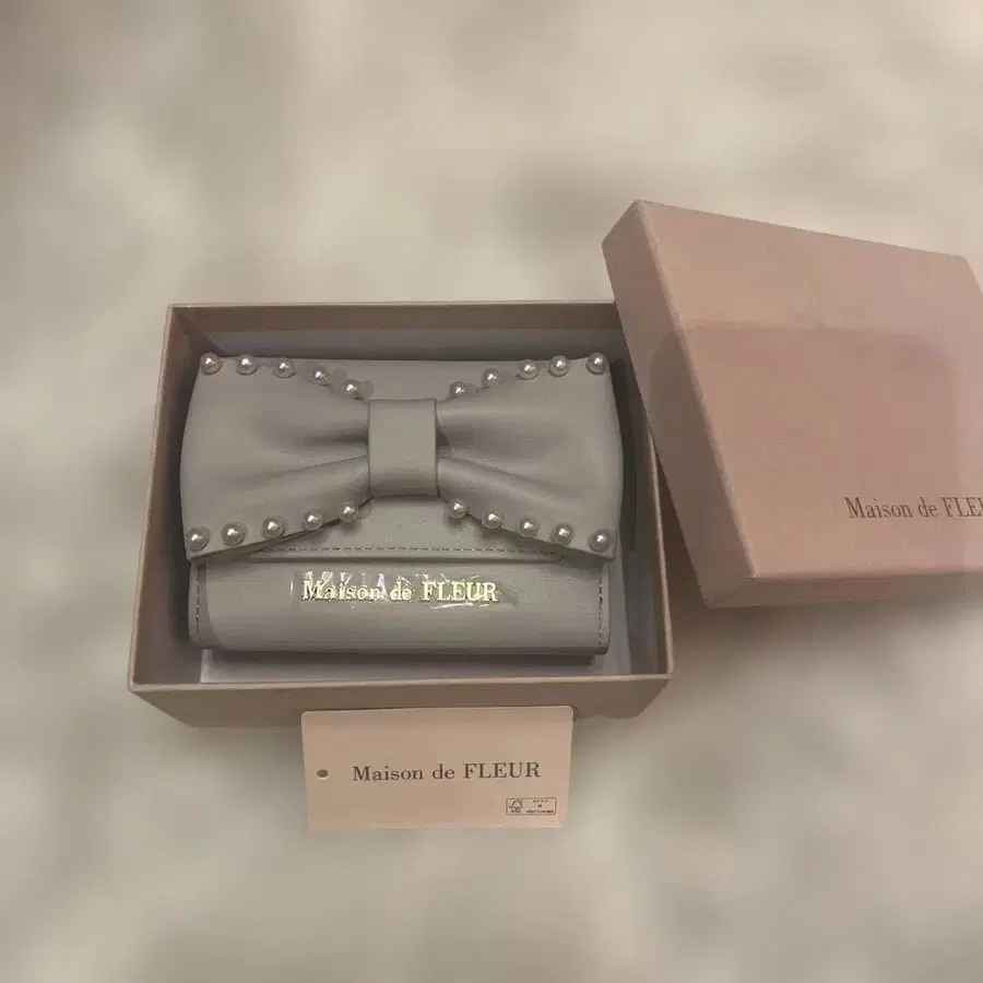 메종 드 플뢰르 리본 펄 3단 접이식 지갑