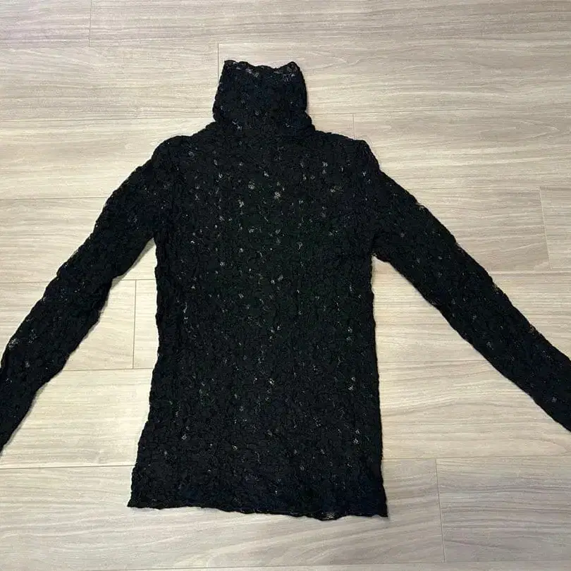 자동 번역되었어요. 원문보기레이스 소재의 블랙 터틀넥 상의, 긴팔 디자인입니다.