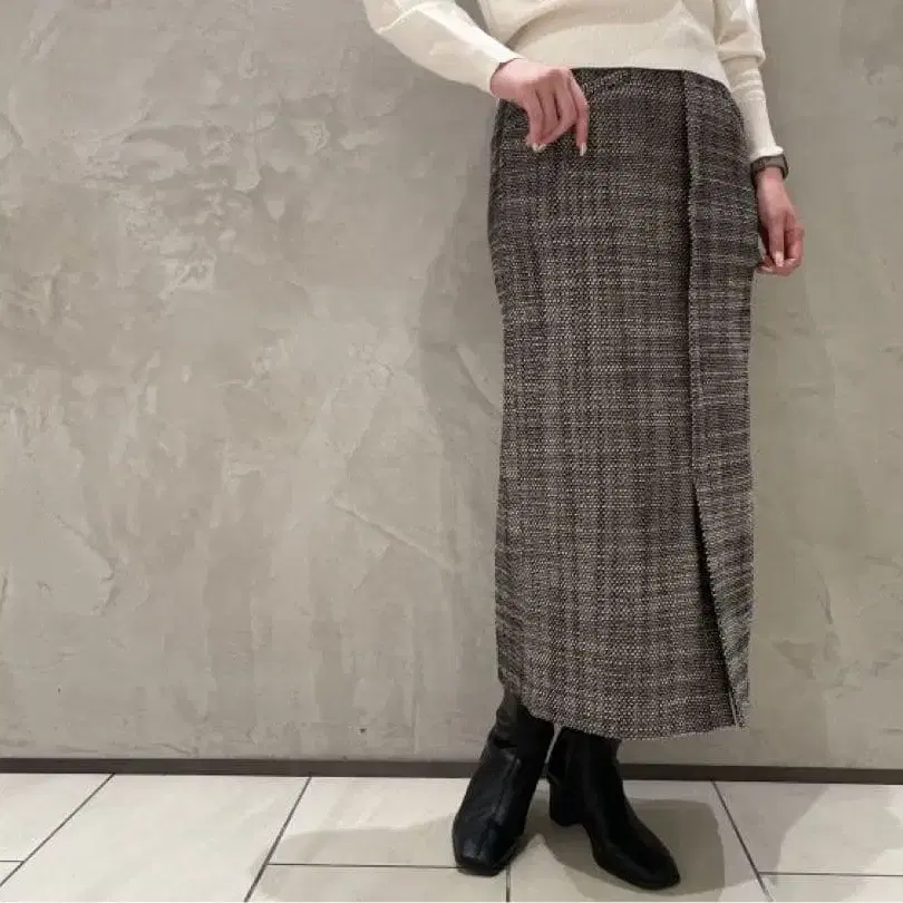 BLENHEIM 플리츠 트위드 롱 타이트 스커트