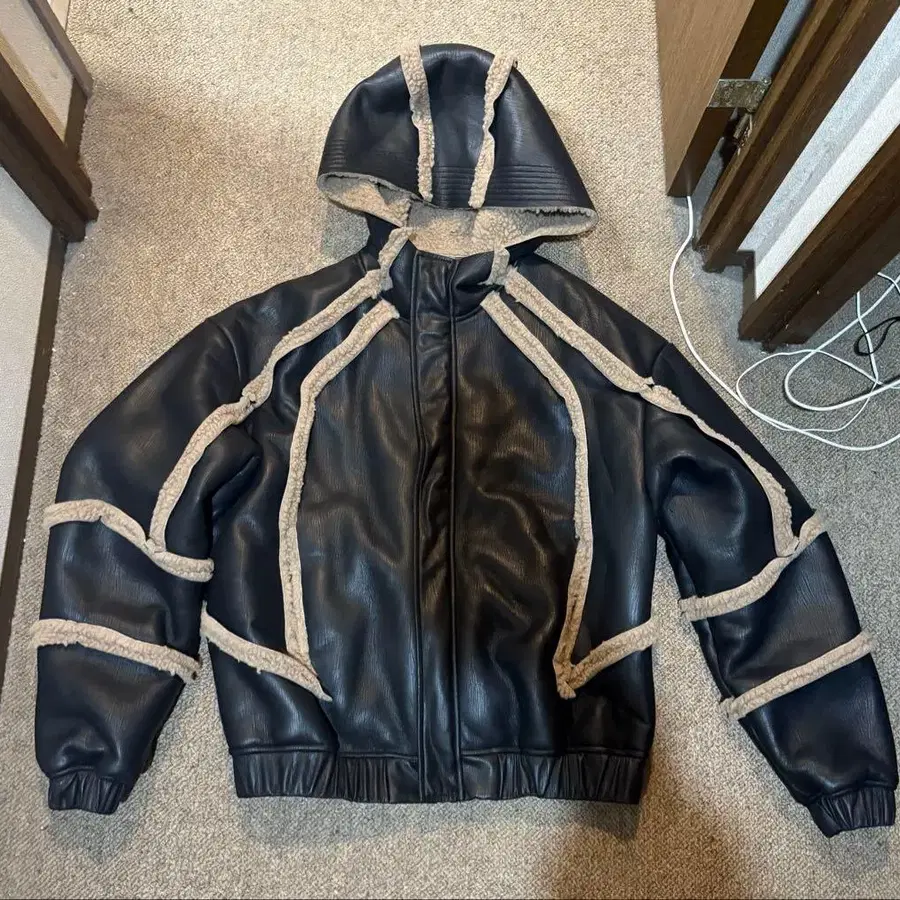 지하인 온라인 CROWORLD 후드 부착 가죽 자켓 L 사이즈
