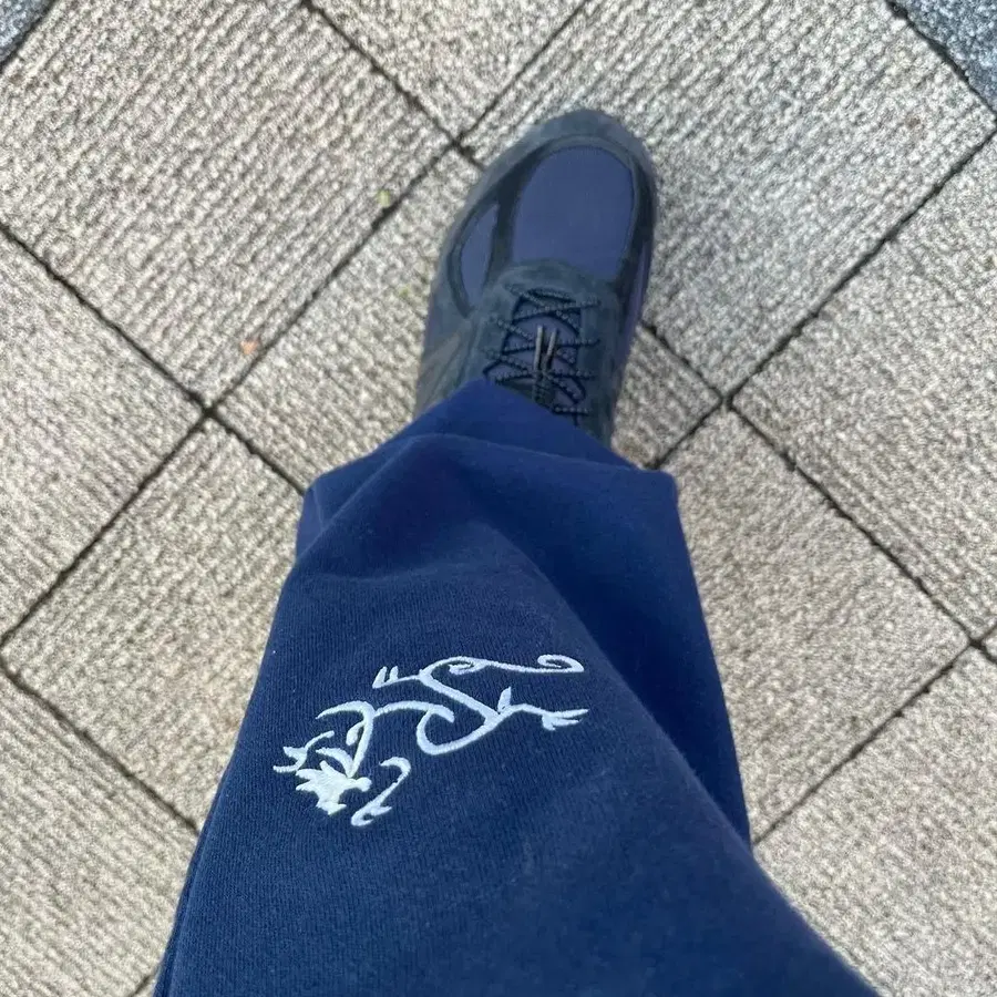 이 스웨트 팬츠는 아웃도어 브랜드의 부트레그 디자인을 정교한 자수로 표현한 한정판 모델로, 50,000엔에 거래될 정도로 희소성이 높은 아이템입니다.