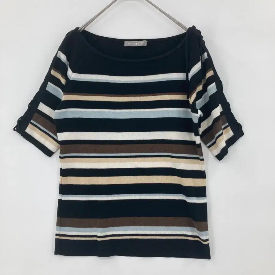 색상: 블랙 x 브라운 x 베이지 x 라이트 블루의 멀티 보더