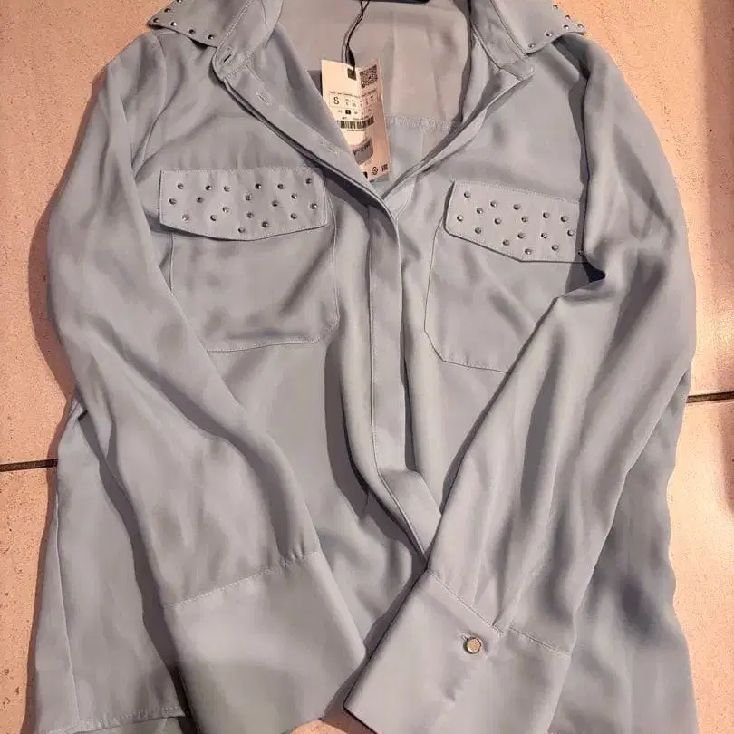 Zara 스터드 장식 라이트 블루 긴팔 셔츠