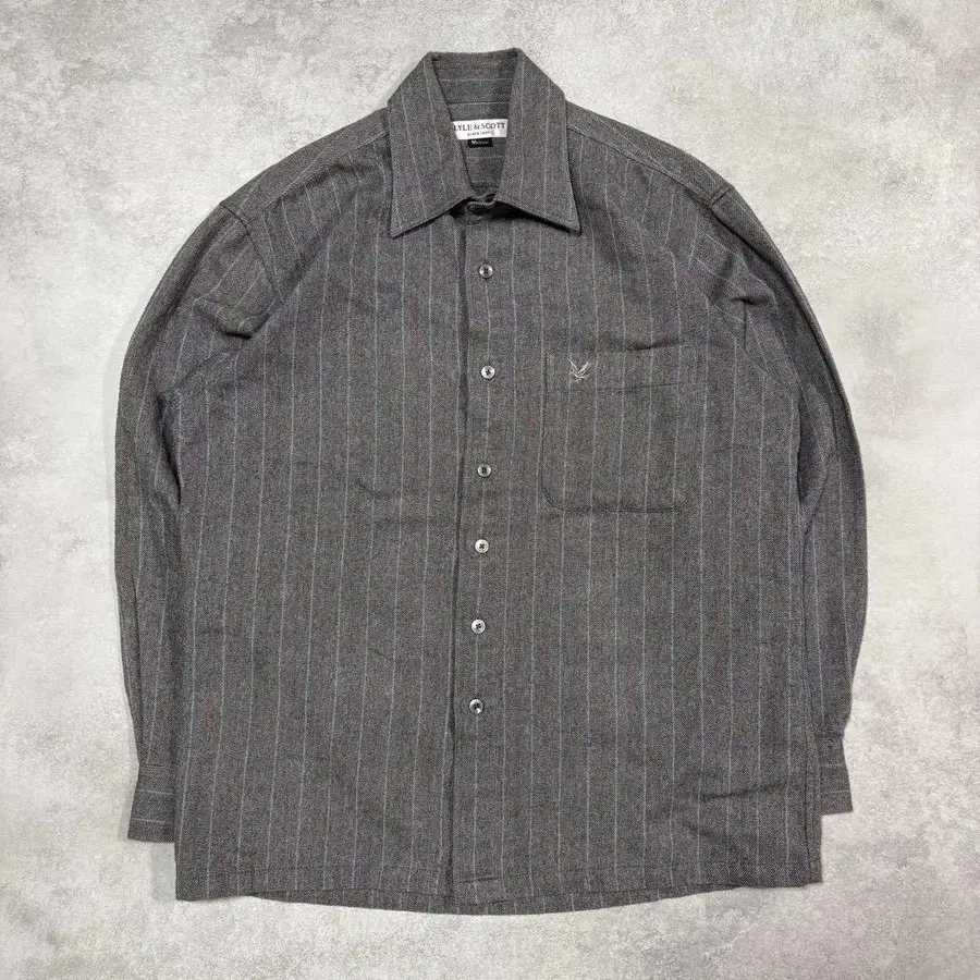 스트라이프 플란넬 셔츠 긴팔 클래식 깔끔한 캐주얼 그레이 M