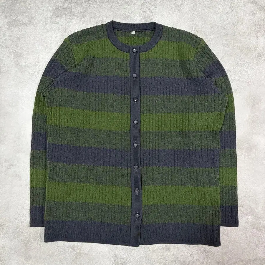 보더 니트 가디건 그린 x 네이비 내추럴 캐주얼