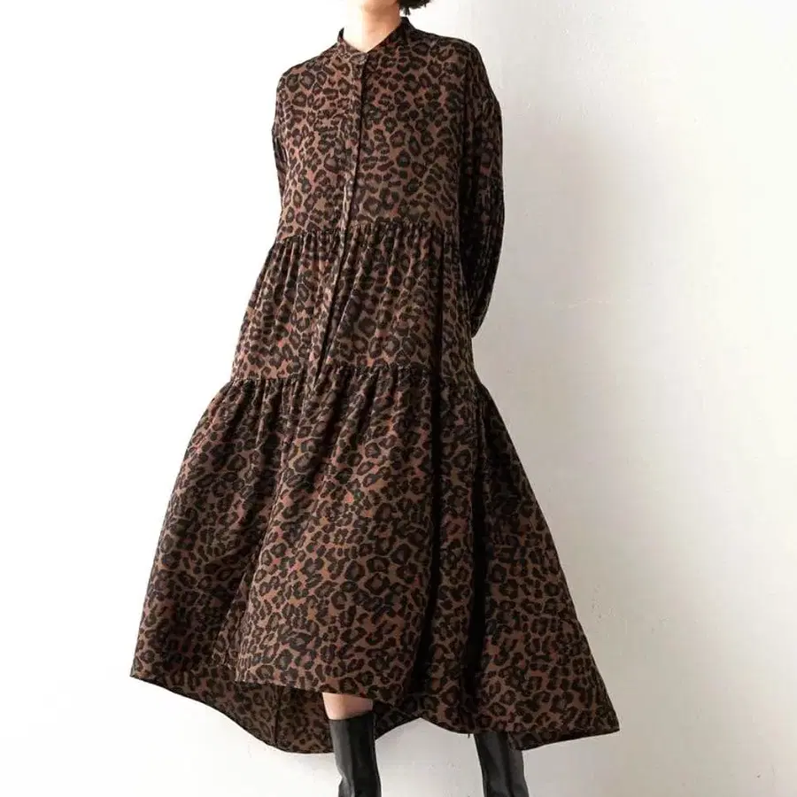 Whim Gazett 레오파드 개더 원피스 롱 표범 무늬 F