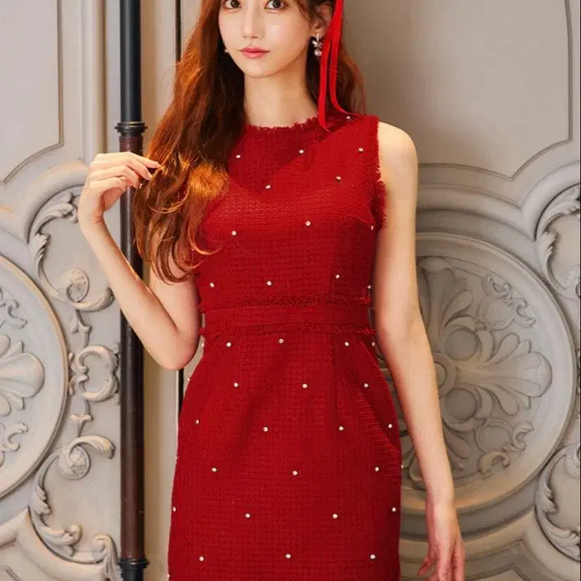 Jewels 빨간색 슬리브리스 타이트 드레스