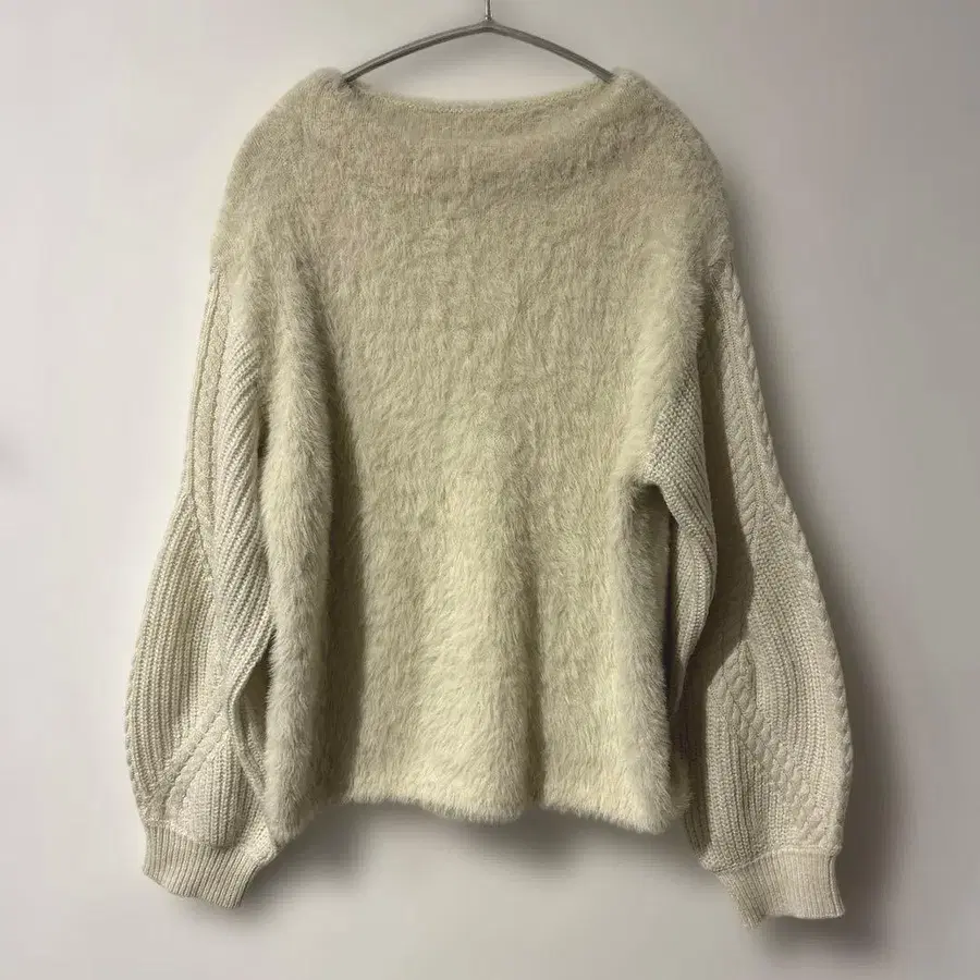 개럴개런트 이소재 믹스 샤기 니트 케이블 니트 아이보리