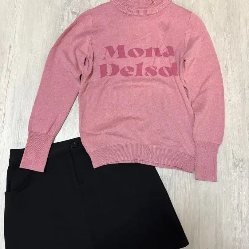 새상품 M 사이즈 델솔 골프 니트 속기모 스커트 셋업 핑크