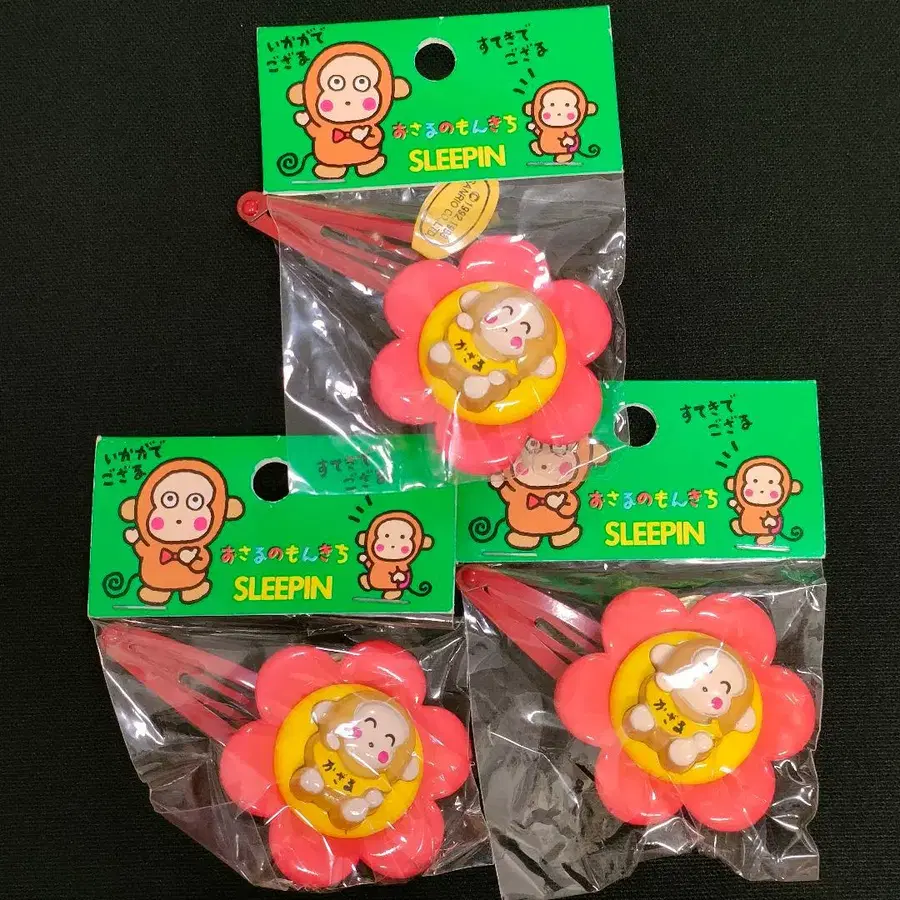 새상품 산리오 오사루노몬키치 쓰리핑 3개 세트 헤어핀 헤이세이 레트로