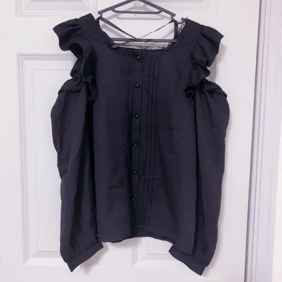 MARS 어깨 트임 새틴 리본 크로스 블라우스
