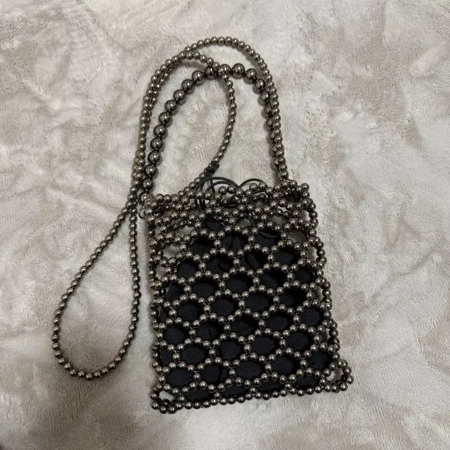 비즈 메쉬 블랙 숄더백