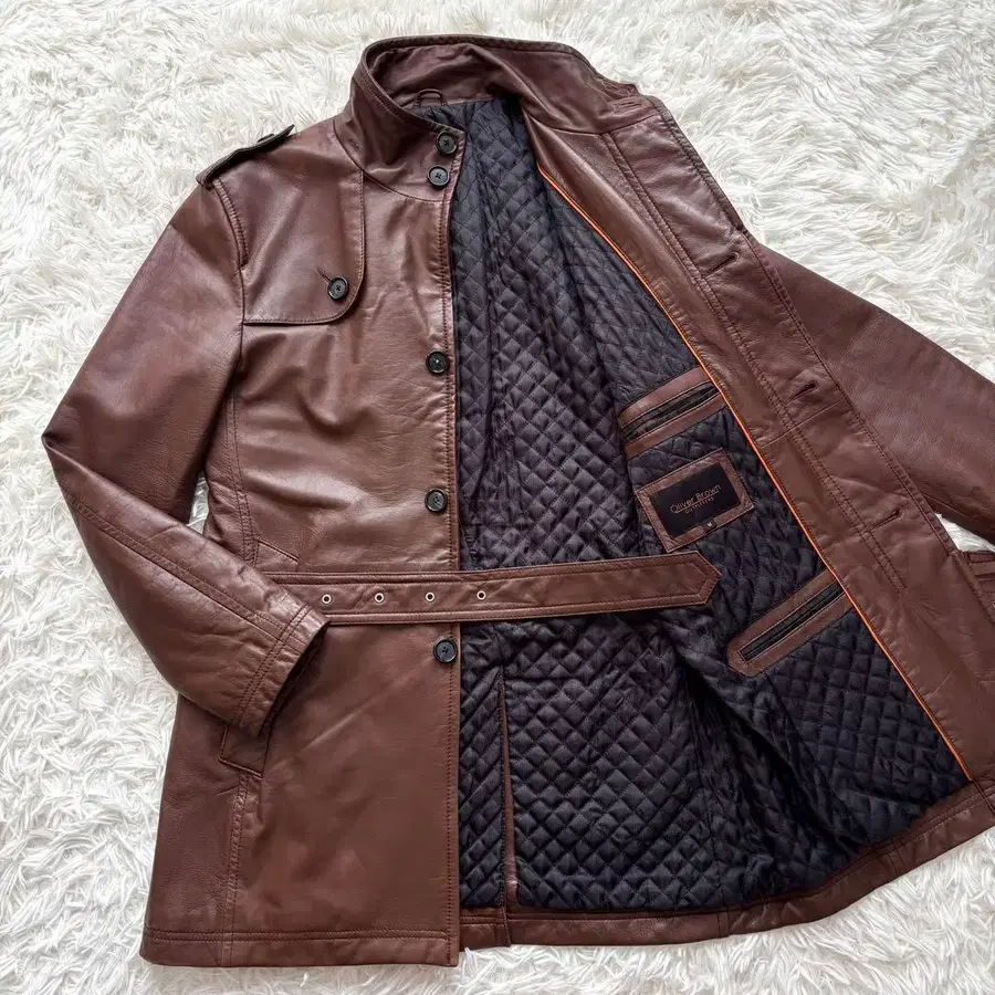 양가죽 퀼팅 벨트 트렌치코트 올리버 브라운 오렌지 광택감