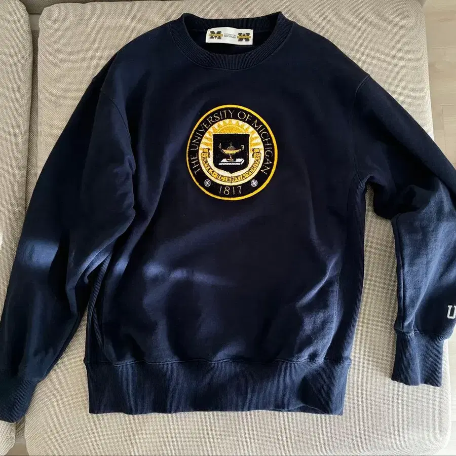 MICHIGAN 미시간 대학교 맨투맨 트레이닝복 자수 패치 네이비