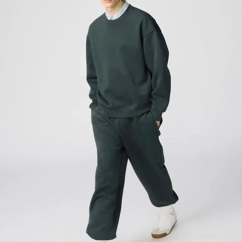 유니클로C 다크 그린 와이드 스웨트 팬츠