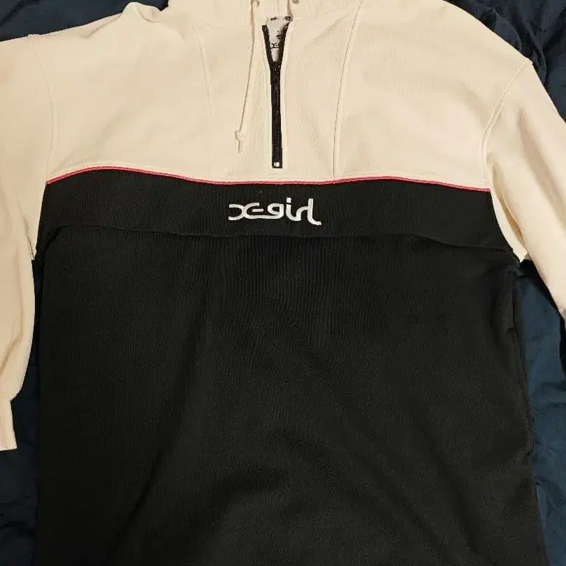 xgirl 하프 지퍼 후드티 화이트/블랙