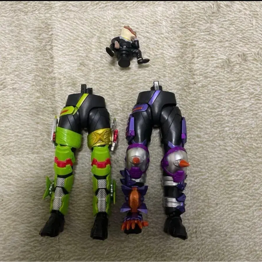 자동 번역되었어요. 원문보기가동식 그린과 보라색 피규어 세트, 머리 부품 포함.