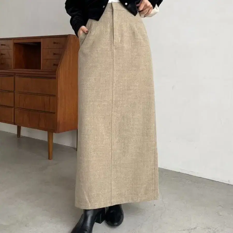 CAPRICIEUX LE'MAGE 피치 터치 I 라인 스커트 베이지 PS