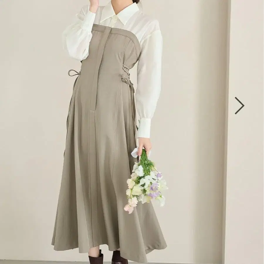 mysty woman 도킹 레이스업 원피스 베이지 긴팔 셔츠