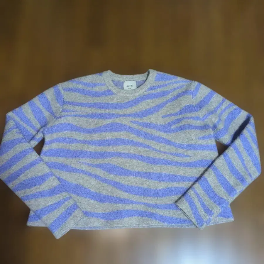 ALYSI 그레이와 보라색 스트라이프 디자인의 크루넥 긴팔 스웨터, 박스 실루엣으로 스타일리시합니다. - 브랜드: ALYSI - 색상: 그레이와 보라색 스트라이프 - 스타일: 크루넥 - 소매 길이: 긴팔 - 디자인: 박스 실루엣 어깨 너비 44. 가슴 너비 55. 소매 길이 60. 기장 43