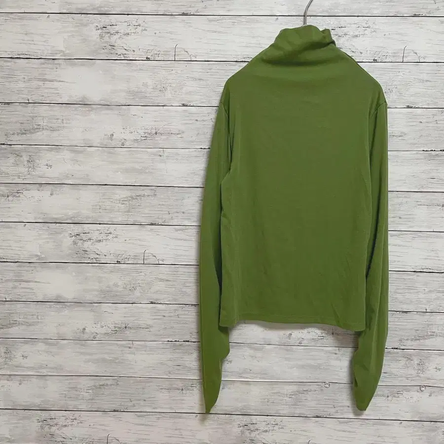 자유구 하이넥 볼륨 슬리브 니트(M) 그린 무지 하이 게이지 스웨터