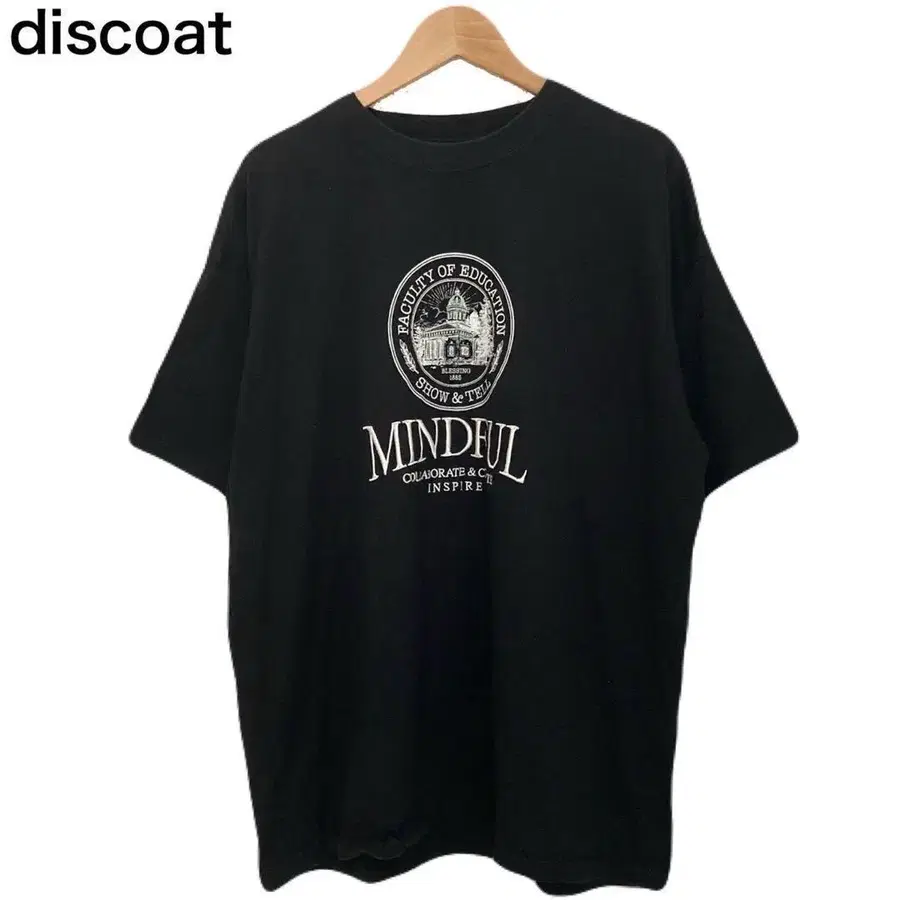 디스코트 프린트 여성용 반팔 블랙 둥근넥 코튼 T셔츠