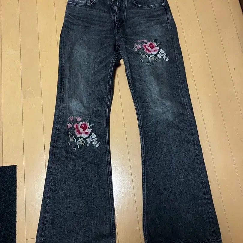 다이리쿠 플라워 데님 플레어 데님 블랙 블랙
