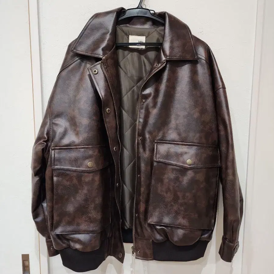 JaVa 인조 가죽 블루종 포켓 부착 브라운