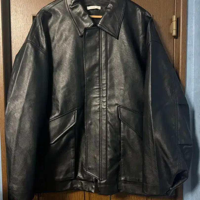 WYM ARTIFICIAL GRAIN MILITARY BLOUSON 위姆 가죽 블루종 - 색상: 블랙 - 소재: 인조 가죽 - 브랜드: WYM - 사이즈: L 1~2회만 착용하여 흠집이나 얼룩 없이 상태가 매우 좋습니다. 신장 172cm, 몸무게 65kg인 제가 착용하기에는 너무 커서 판매합니다. 약 1년 전에 구매했으므로 작년 모델일 것으로 생각됩니다. 즉시 구매 ok입니다.