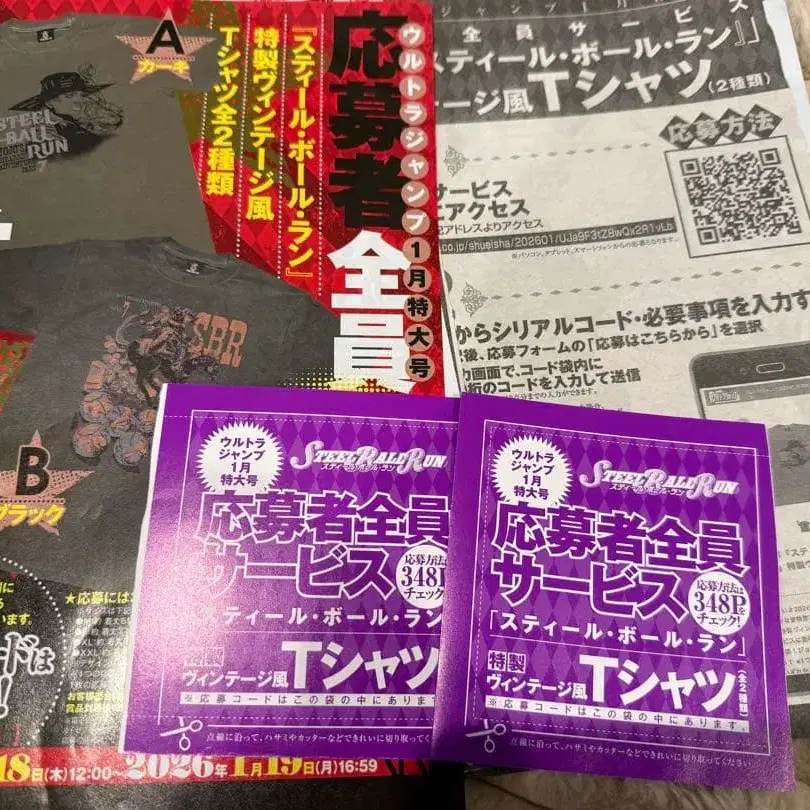 울트라 점프 스틸볼런 T셔츠 응모권 2장 세트