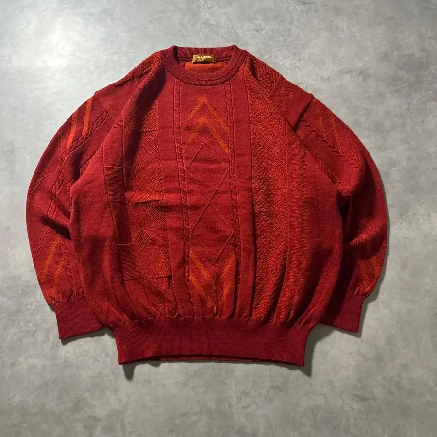 Lancel 케이블 레드 오렌지 디자인 레트로 니트 스웨터