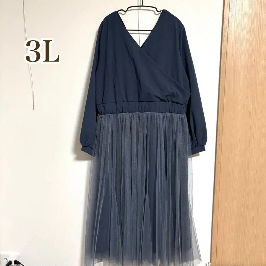다크 블루 3L 사이즈, 스무스 원단 상의와 튤 스커트의 조합이 매력적인 원피스입니다.