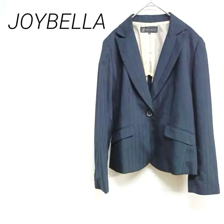 스트라이프 디자인의 네이비 테일러드 자켓.