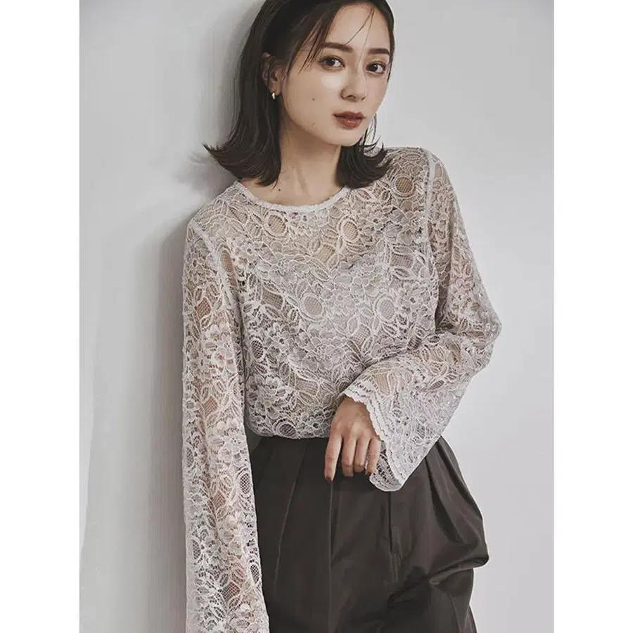 Spick and Span 레이스 절개 이소재 상의 그레이 일본제