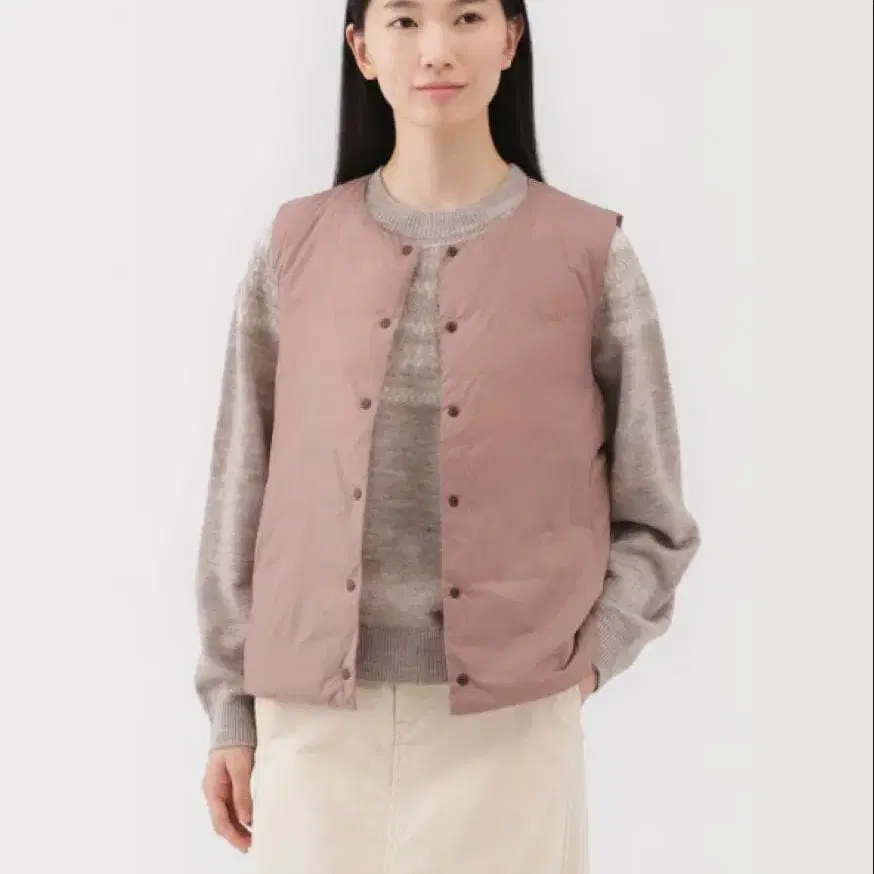 무인양품 경량 다운 포켓터블 노카라 베스트 스모키 핑크
