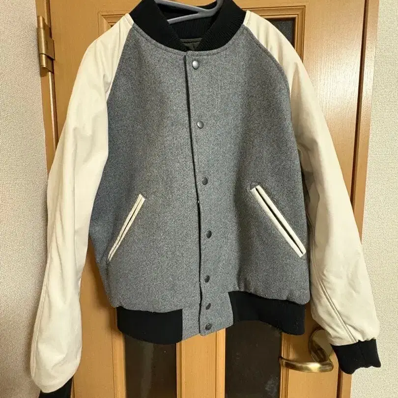 바시티 자켓 그레이/화이트 올리브 그린, 리버서블