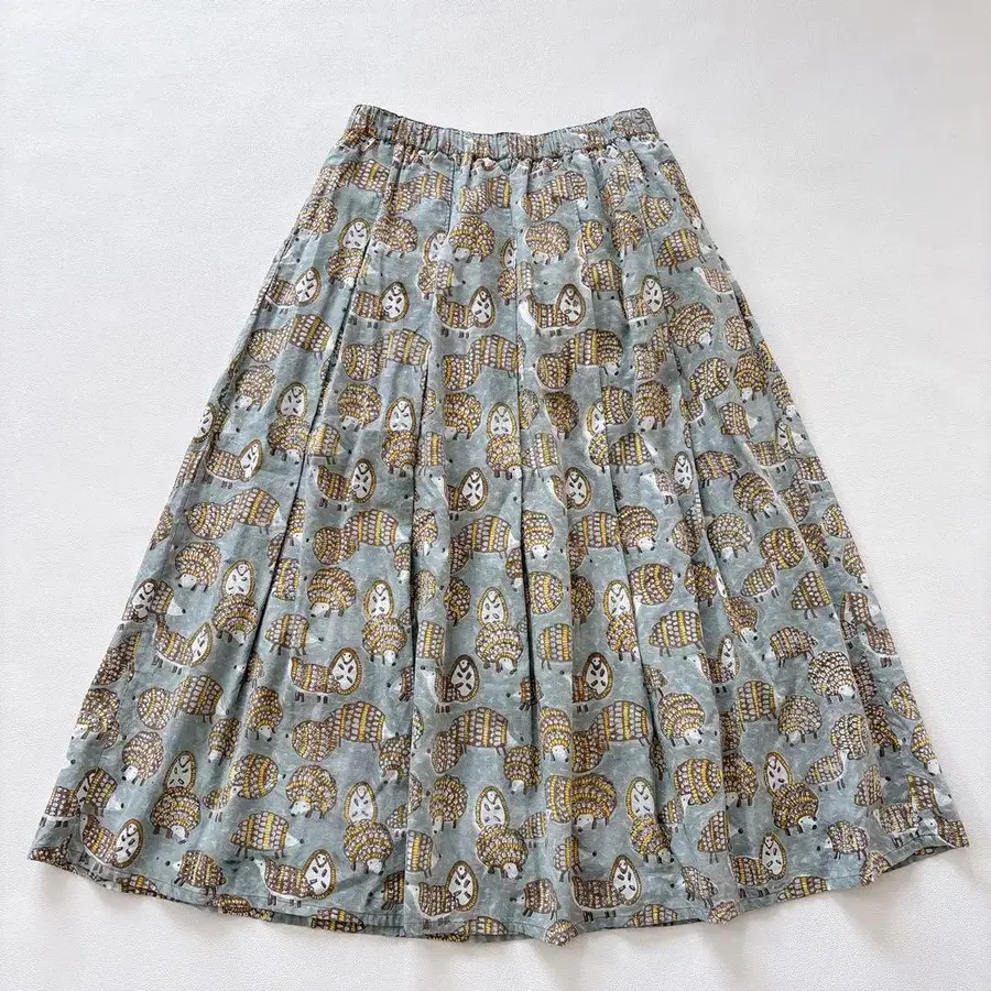 50'S 포플린 [ 고슴도치 ] 블록 프린트 턱 플레어 스커트